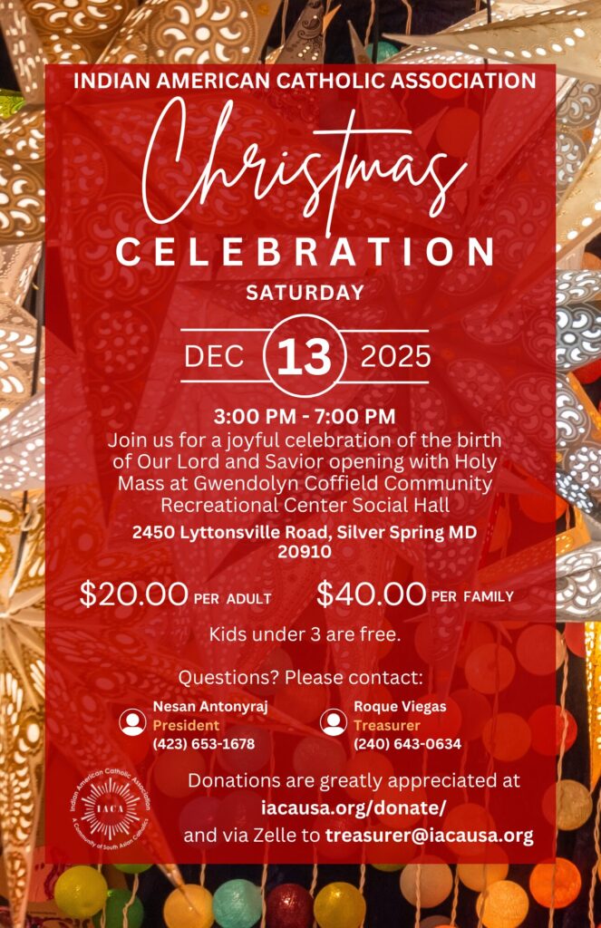 The IACA Christmas Celebration will be held on December 13, 2025 at 3:00PM. Come join us to celebrate the Christmas season! We will begin with Mass, followed by fun events.